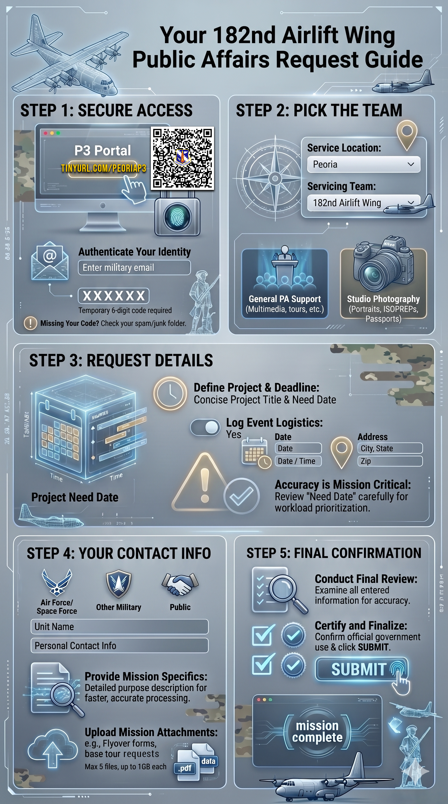 At the 182nd Airlift Wing, P3 serves as the primary "one-stop shop" for all internal and external customers seeking PA capabilities.